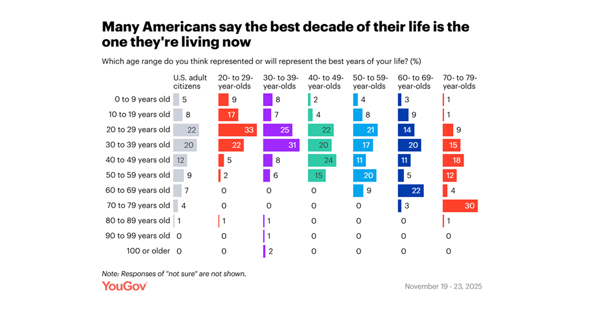 흔히 젊음과 청춘을 상징하는 20~30대가 인생에서 가장 찬란한 시기라고 생각하기 쉽지만, 설문 결과를 나이별로 분석해 보니 그런 편견과 무색하게 새로운 인사이트를 얻을 수 있었습니다. 어쩌면 인생에서 가장 좋은 시기는 특정 나이에 있는 것이 아니라, 각자가 살아가고 있는 ‘지금’일지도 모릅니다! 유고브에서 나이별 결과뿐 아니라, 성별에 따른 응답 결과도 분석하고 있으니 출처 링크를 통해 확인해 보세요!
